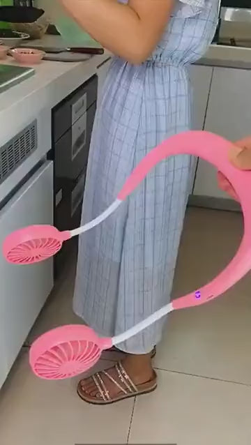 360° Rotatable Double Fan This neckband fan with dual wind head offers fully adjustable arms to give you 360 degree coverage. You can sit back and set the Lazy Fan to the most comfortable angle to enjoy the cool breeze anytime & anywhere.